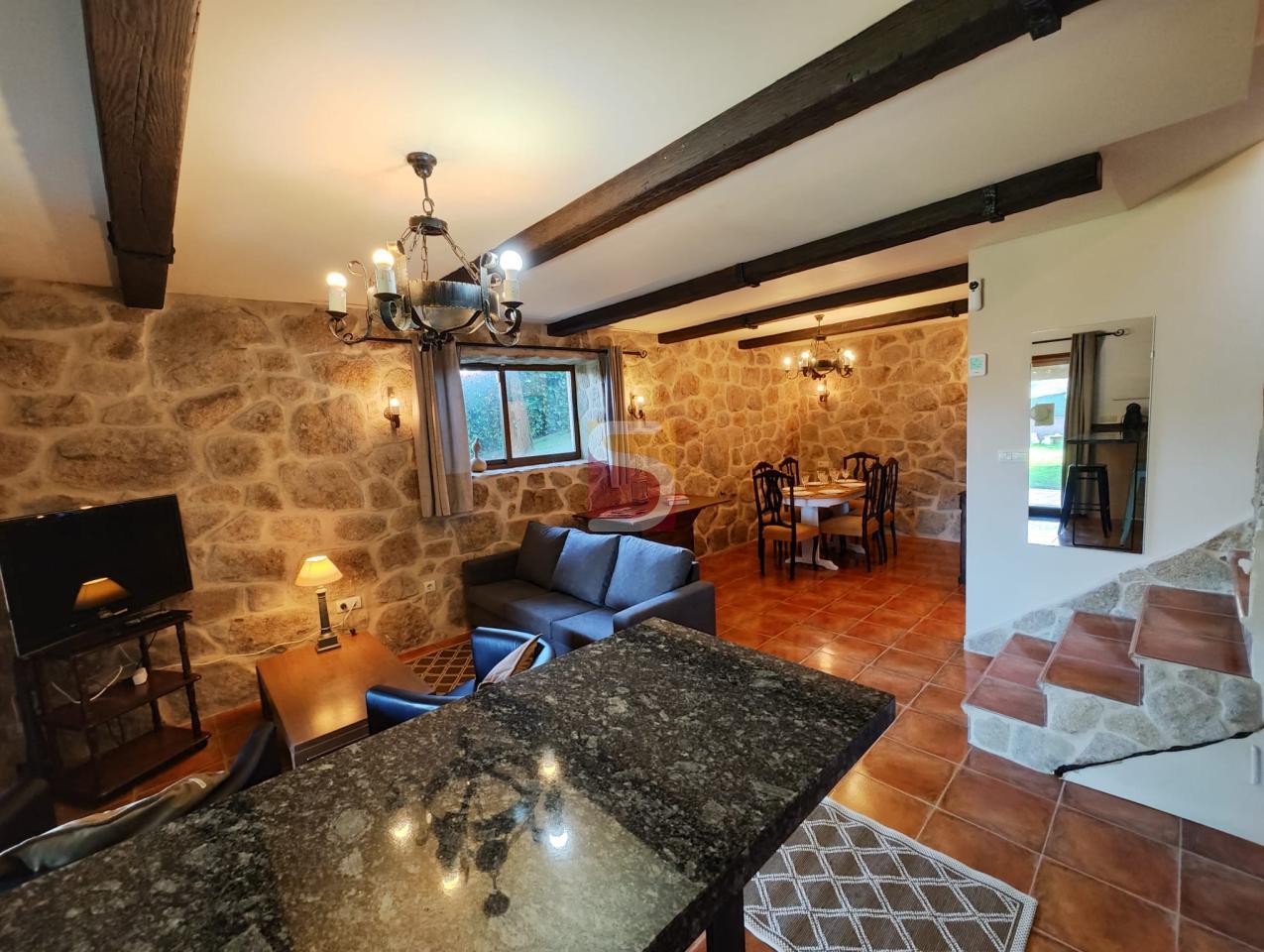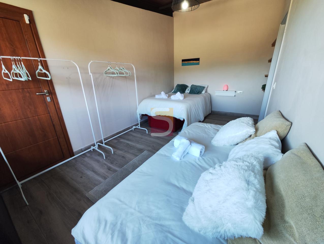 En la planta superior, dos habitaciones acogedoras y una sala adicional te brindan el espacio perfecto para descansar y relajarte después de un día de aventuras.